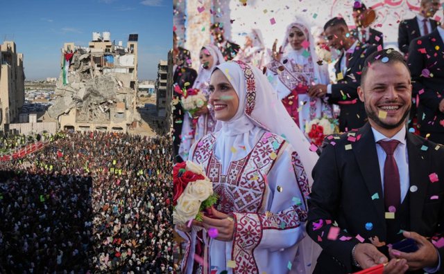 Në ‘zemër’ të rrënojave të Gazës, aty ku prej dy vitesh ka mbizotëruar shkatërrimi, zhurma e bombave u zëvendësua për një ditë nga muzika, vallet dhe buzëqeshjet. Sot 12 dhjetor, 54 çifte palestinezë i...