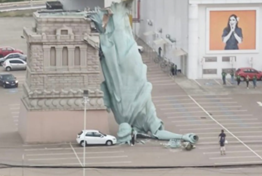 BRAZIL - Me 15 dhjetor, një erë e fortë gjatë një stuhie rrëzoi një kopje të Statujës Amerikane të Lirisë në qytetin jugor brazilian të Guaibas. Një video që po qarkullon në internet tregon statujën 24...