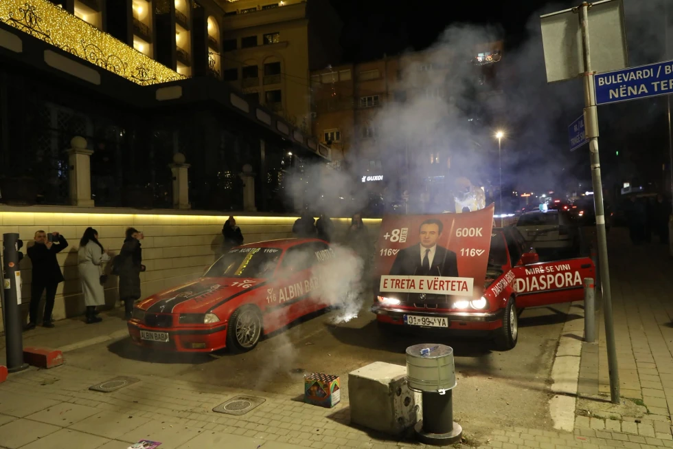 Derisa disa nga simpatizantët e Albin Kurtit kanë shkuar për festë te zyrat e VV-së, janë të tjerë të cilët me tupana po vallëzojnë në sheshet e Prishtinës, e para kanë vendosur edhe veturën me mbishkrim...