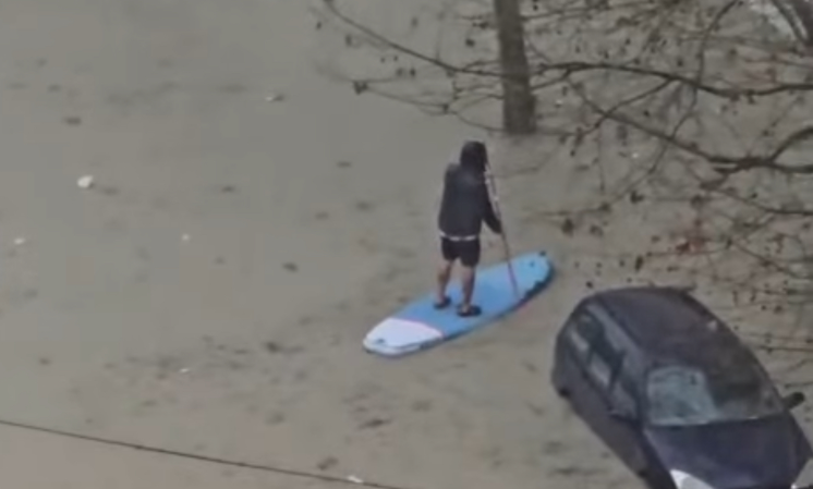 Përmbytjet në Durrës kanë bërë që qytetarët të tregohen krijues me mënyrat për të lëvizur në rrugët e pakalueshme nga uji. Nga pamjet e publikuara shihet qytetari i cili ka përdorur një dërrasë sërfi dhe...