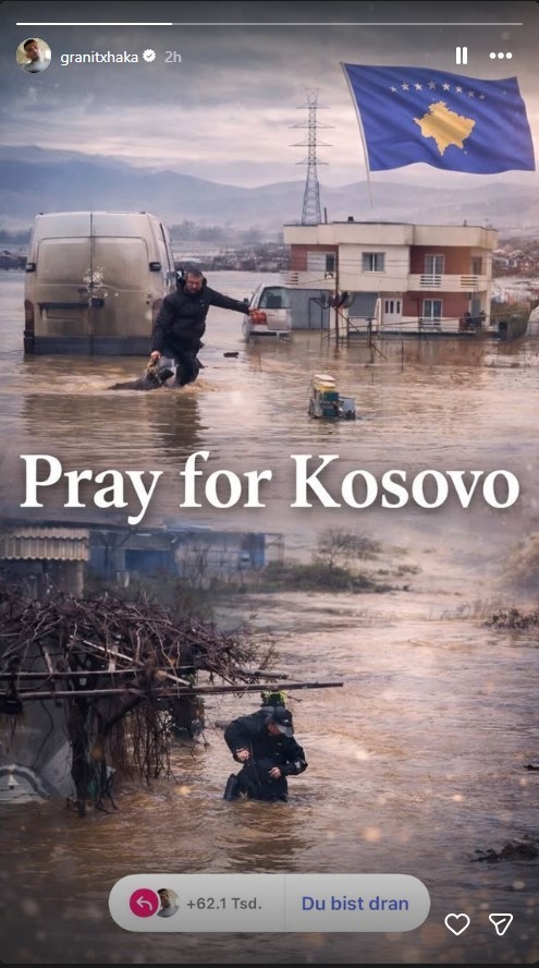 Mesfushori shqiptar, Granit Xhaka ka shfrytëzuar rrjetet sociale për të bashkë ndjerë vuajtjen me qytetarët e Kosovës pas vërshimeve të mëdha që kanë ndodhur në disa prej qyteteve të vendit tonë. Ditët...