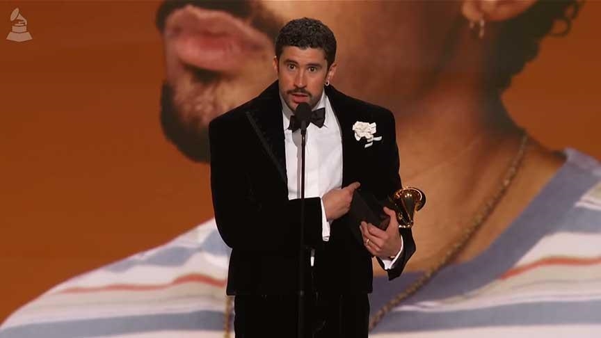 Bad Bunny, muzikanti portorikan, është bërë artisti i parë në historinë 68-vjeçare të Çmimeve Grammy që fiton çmimin për albumin e vitit me një album të kënduar tërësisht në spanjisht. Ai u shpërblye për...