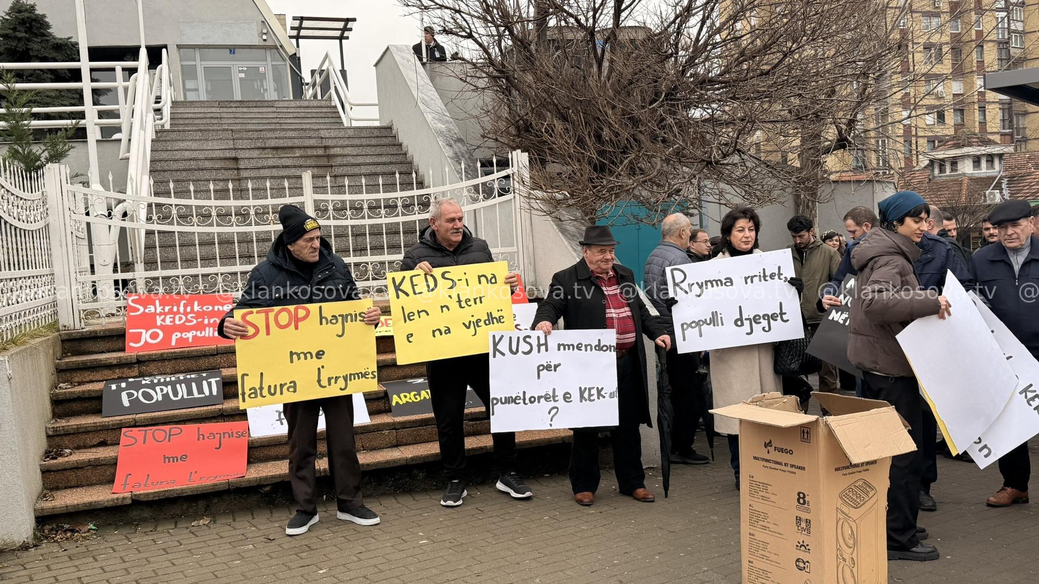 Qytetarët kanë filluar të mblidhen para objektit të KEDS në Prishtinë, për të kundërshtuar njëzëri mundësinë edhe të një tjetër rritje të çmimit të energjisë. Në pankarta shihet mbishkrimi ku i janë përgjigjur...