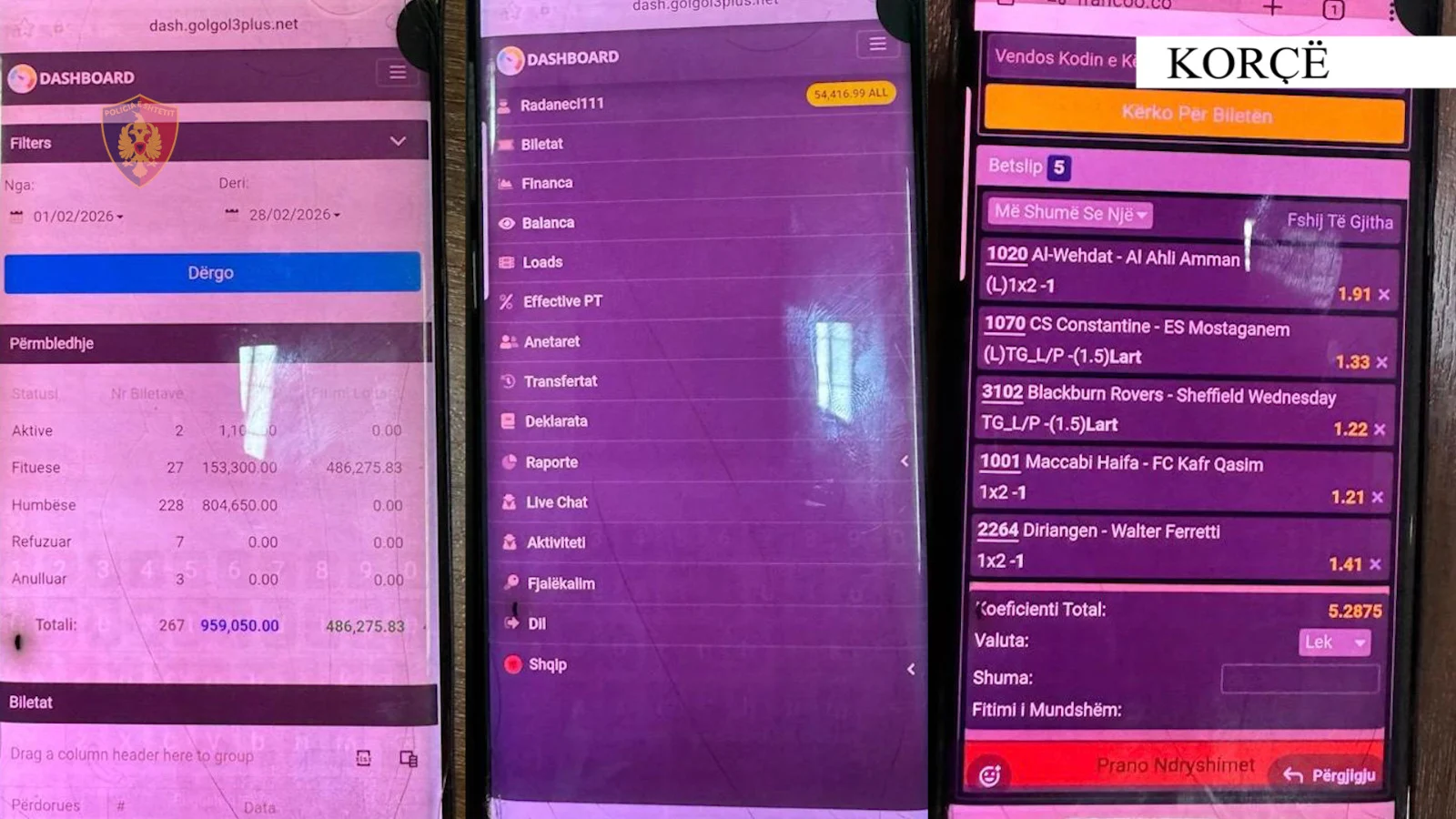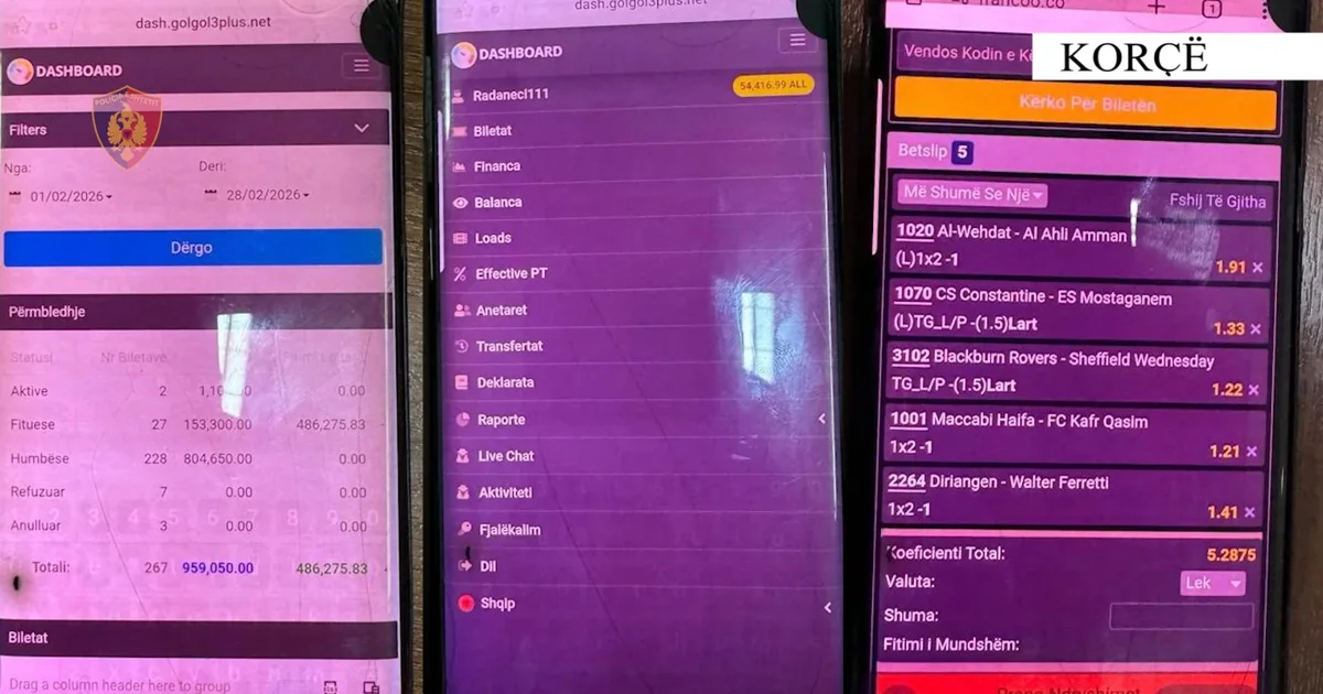 Njoftimi i Policisë: "Vijojnë kontrollet në të gjithë territorin e qarkut Korçë, për evidentimin dhe goditjen e veprimtarisë së paligjshme të lojërave të fatit. Goditen 2 raste të tjera të kësaj veprimtarie....