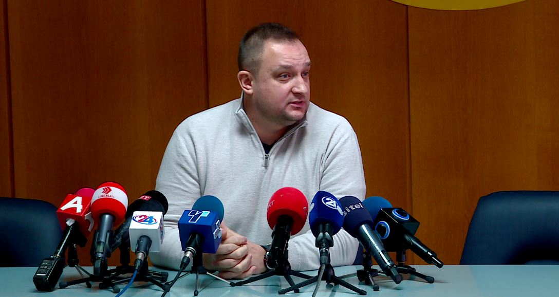 Kryetari i Konfederatës së Sindikatave të Lira (KSL), Bllagoja Rallpovski para takimit të sotëm me kryeministrin Hristijan Mickoski në të cilin marrin pjesë edhe përfaqësues të sindikatave të tjera përfaqësuese...