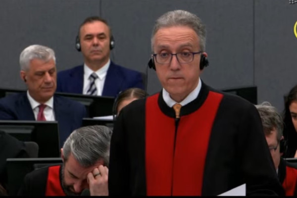 Në Hagë ka nisur fjalën mbrojtja e ish-presidentit Hashim Thaçi, Luka Mishetiq. Ai ka kërkuar katër orë për fjalën e tij. / Zëri
