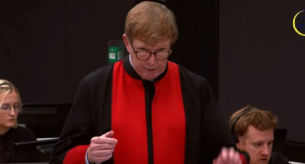 Avokati i Jakup Krasniqit, Aidan Ellis, po paraqet fjalët përmbyllëse në gjyqin e madh ndaj Thaçit dhe të tjerëve. “Kryerja e krimeve nga anëtarë të policisë ushtarake, nuk është provë sipas nesh, që zotëri...