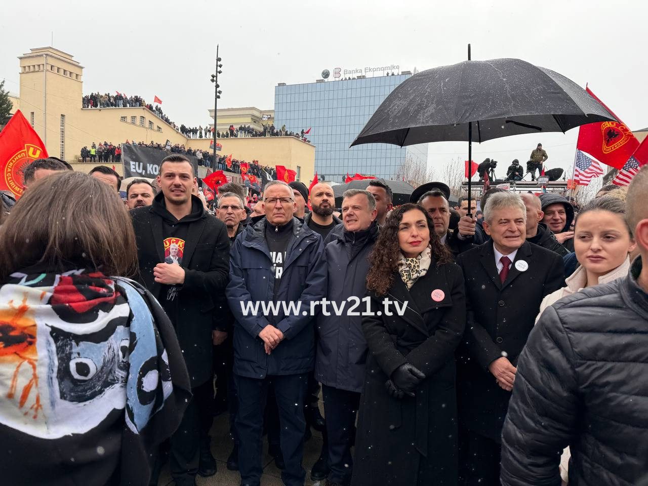 Në marshimin ”drejtësi, jo politikë”, mijëra qytetarë janë mbledhur në sheshin ”Skënderbeu” në Prishtinë në mbështetje të ish-krerëve të UÇK-së që po gjykohen në Hagë. Pjesë e marshimit janë edhe Presidentja...