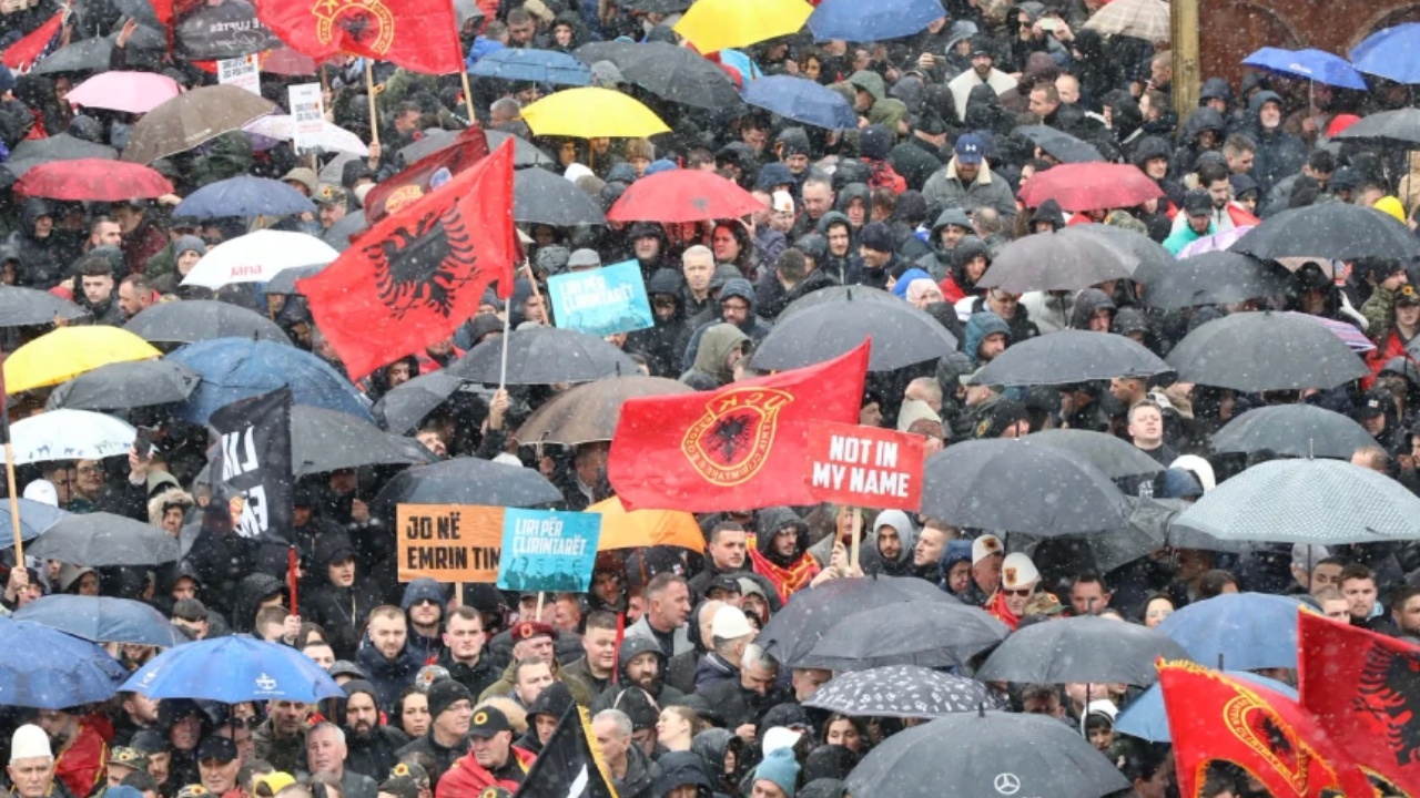 Ka nisur protesta në sheshin “Skënderbeu”, Prishtinë nën moton “Drejtësi, jo politikë” dhe “Liri për çlirimtarët”, duke bërë thirrje për lirimin e ish-krerëve të UÇK-së. Qytetarët mbajnë në duar flamuj...