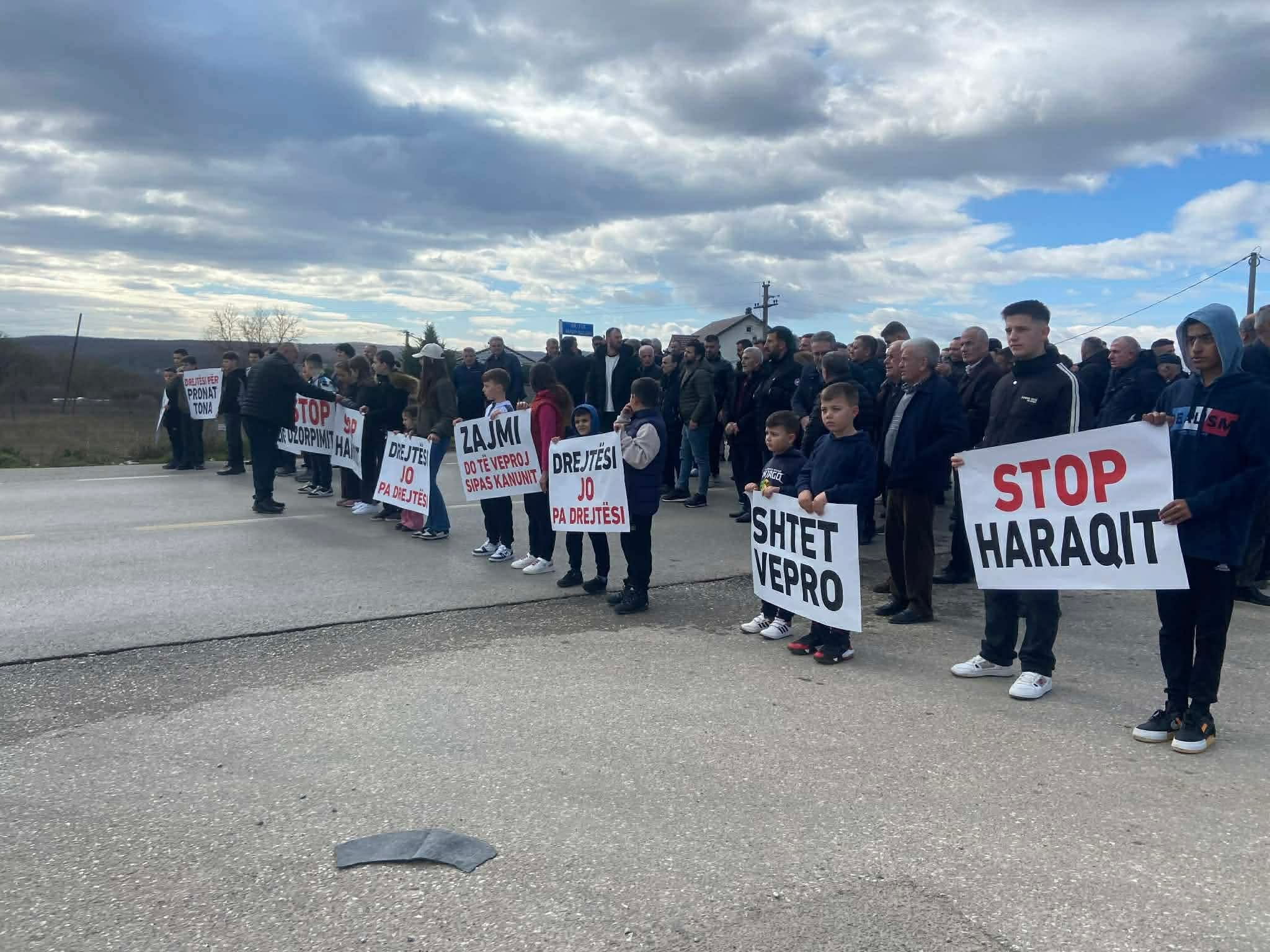 Banorët e fshatit Zajm, me parulla në duar dolën për të protestuar për pronat e tyre. Në shenjë pakënaqësie ata e bllokuan rrugën (magjistralen Prishtinë-Pejë). Ata po kërkojnë nga shteti njohjen e pronësisë...