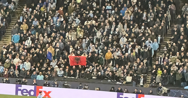 Një moment i veçantë është regjistruar mbrëmjen e kaluar gjatë përballjes mes Manchester City dhe Real Madrid, ku në shkallët e stadiumit është parë të valëvitet flamuri shqiptar. Pamjet tregojnë qartë...