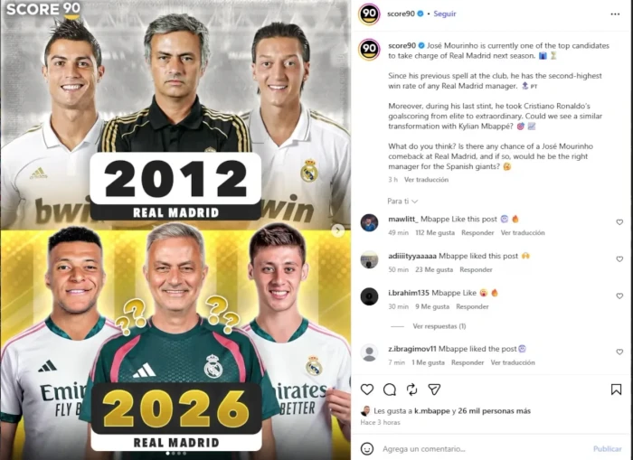 Sulmuesi Kylian Mbappe ka ndezur spekulimet rreth të ardhmes së pankinës së Real Madridit, pasi ka pëlqyer një postim në rrjetet sociale që lidhej me rikthimin e mundshëm të Jose Mourinhos në “Santiago...