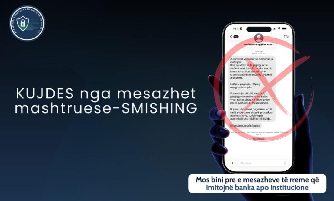 Autoriteti Kombëtar për Sigurinë Kibernetike (AKSK) apeloi sot qytetarët duke tërhequr vëmendjen mbi rritjen e rasteve të mesazheve mashtruese (SMS), të njohura si smishing, të cilat paraqiten si komunikime...