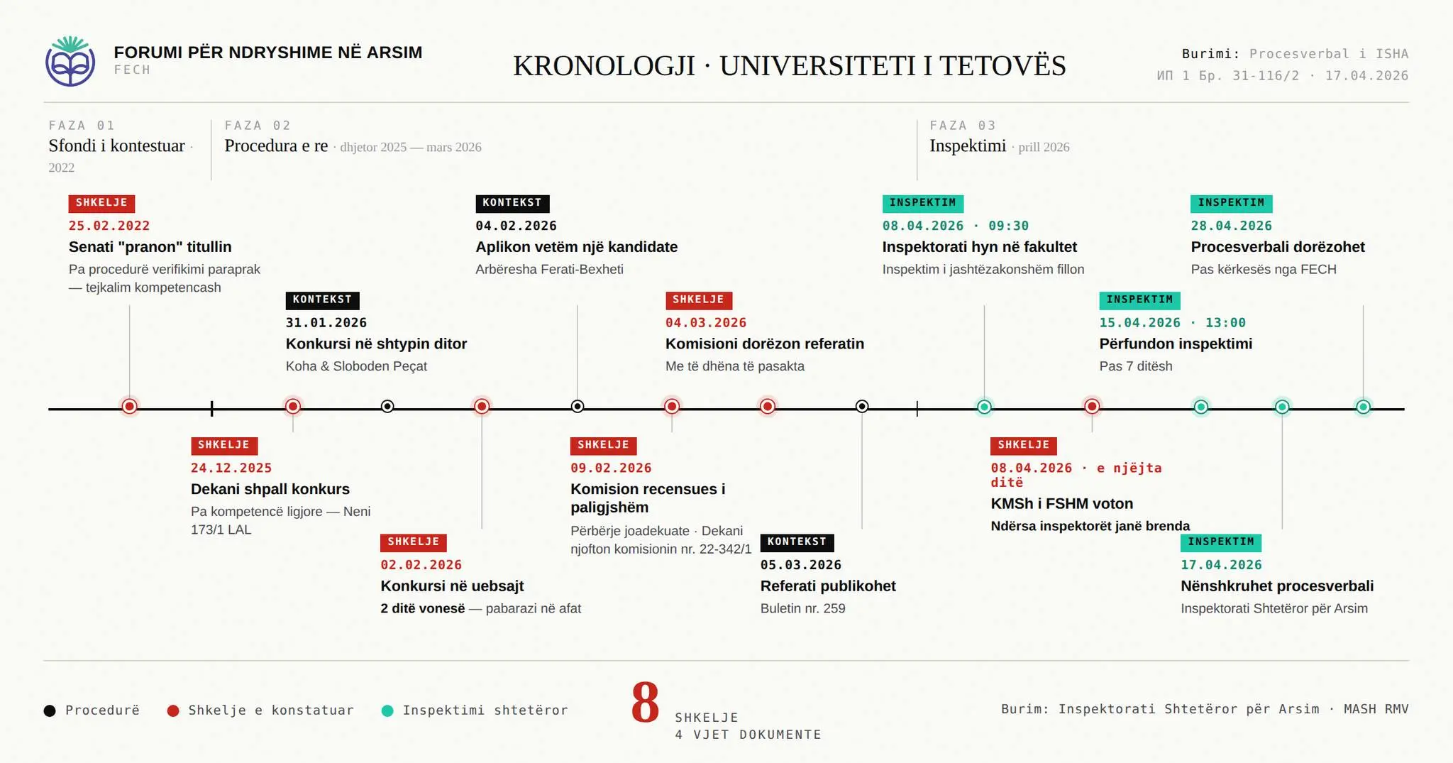 Forumi për Ndryshime në Arsim ka raportuar për një avancim të kundërligjshëm në Universitetin e Tetovës, bazuar në raprotin e Inspektoratit Shtetëror të Arsimit, ata raportojnë se Arbresha Bexheti Ferati,...
