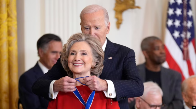 Presidenti i SHBA-së Joe Biden ka ndarë Medaljen Presidenciale të Lirisë, nderimi më i lartë civil i vendit, për ish-sekretaren amerikane të Shtetit Hillary Clinton dhe 18 të tjerë "të cilët e kanë bërë...