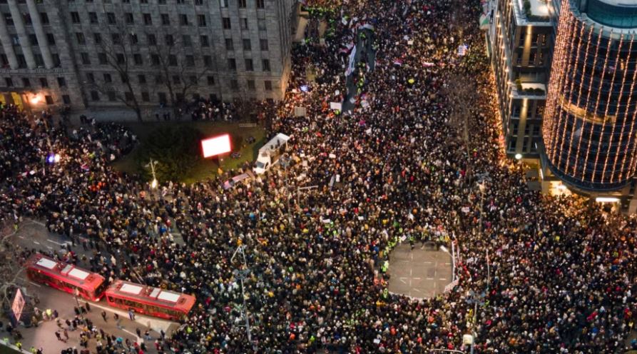 SERBIA- Dhjetëra mijëra protestues kundër qeverisë mbushën rrugët e Beogradit të dielën duke ndezur dritat e telefonave celularë dhe mbajtur 15 minuta heshtje në nderim të viktimave nga shembja e çatisë...