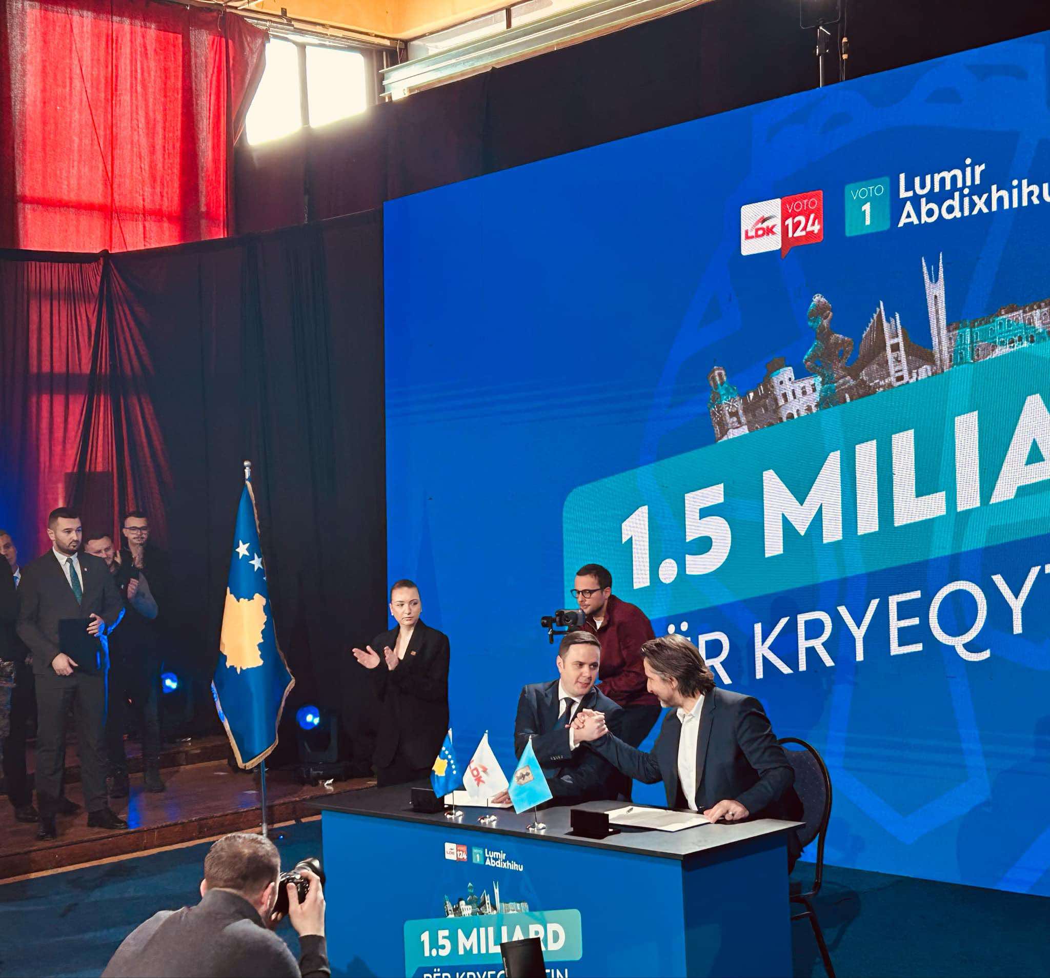 Kryetari i LDK-së Lumir Abdixhiku, së bashku me kryetarin e Komunës së Prishtinës, Përparim Rama, nënshkruajnë sot zotimet për investimet prej 1.5 miliard euro për kryeqytetin. Nënshkrimi i kësaj marrëveshje...