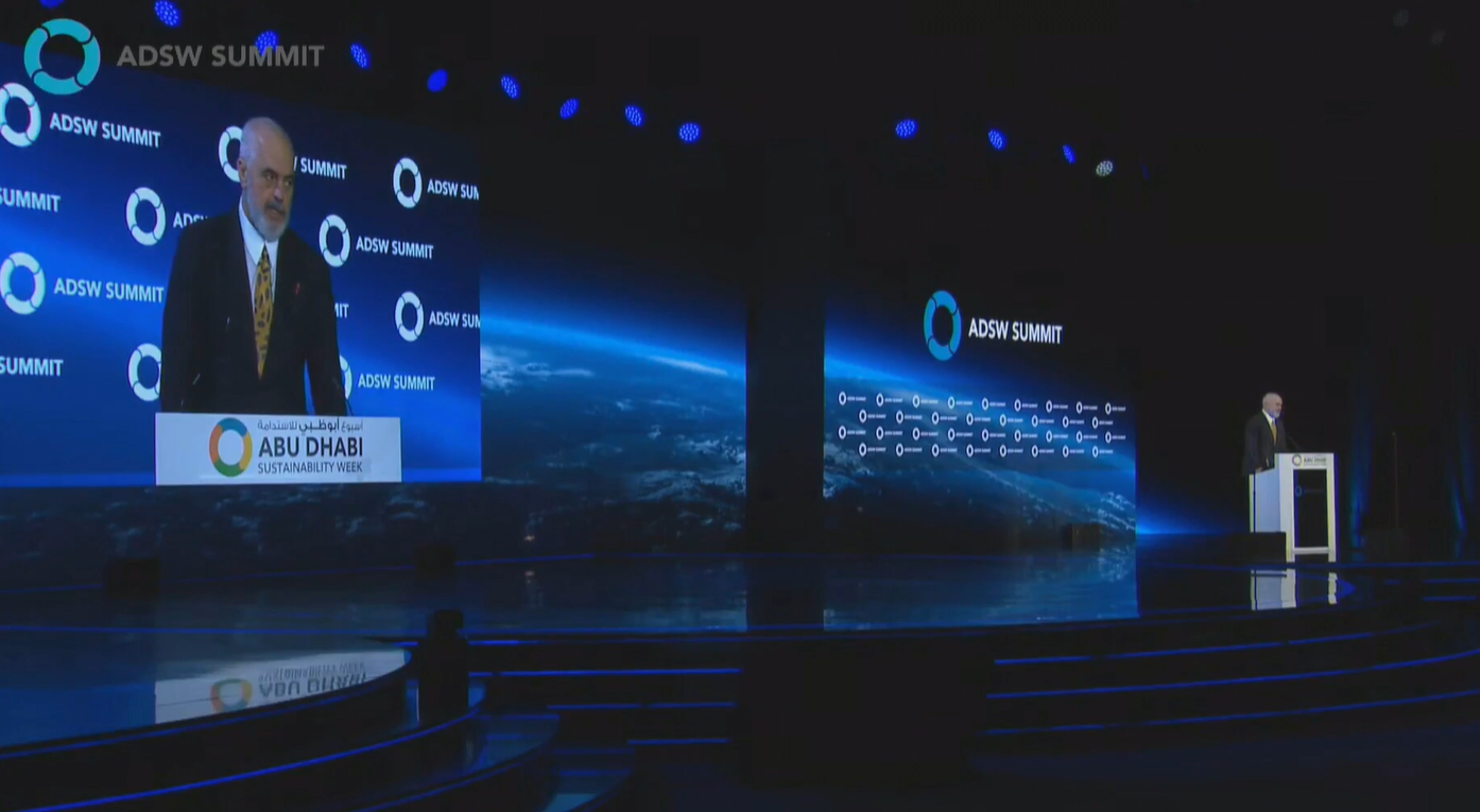 Kryeministri Edi Rama ka marrë pjesë në forumin global për Javën e Qëndrueshmërisë në Abu Dabi të Emirateve të Bashkuara Arabe. “ Prodhimi i energjisë elektrike në Shqipëri është 100% nga burime të ripërtëritshme....