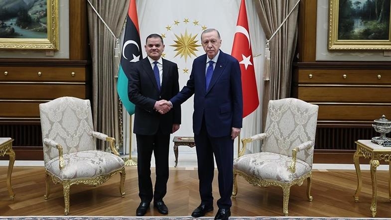Ankara Presidenti i Türkiyes, Recep Tayyip Erdoğan, priti në një takim Kryeministrin e Libisë, Abdul Hamid Dbeibeh, raporton Anadolu. Presidenti Erdoğan e priti Dbeibeh në hyrjen e kompleksit presidencial...