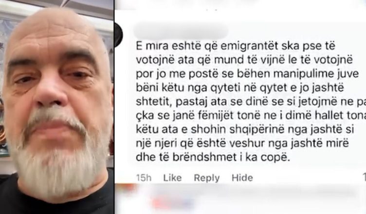 Kryeministri Edi Rama, përmes një videomesazhi, iu përgjigj sot një komentuesi në rrjetet sociale, sipas së cilit, emigrantët nuk kanë pse të votojnë me postë pasi nuk e njohin realitetin në Shqipëri....