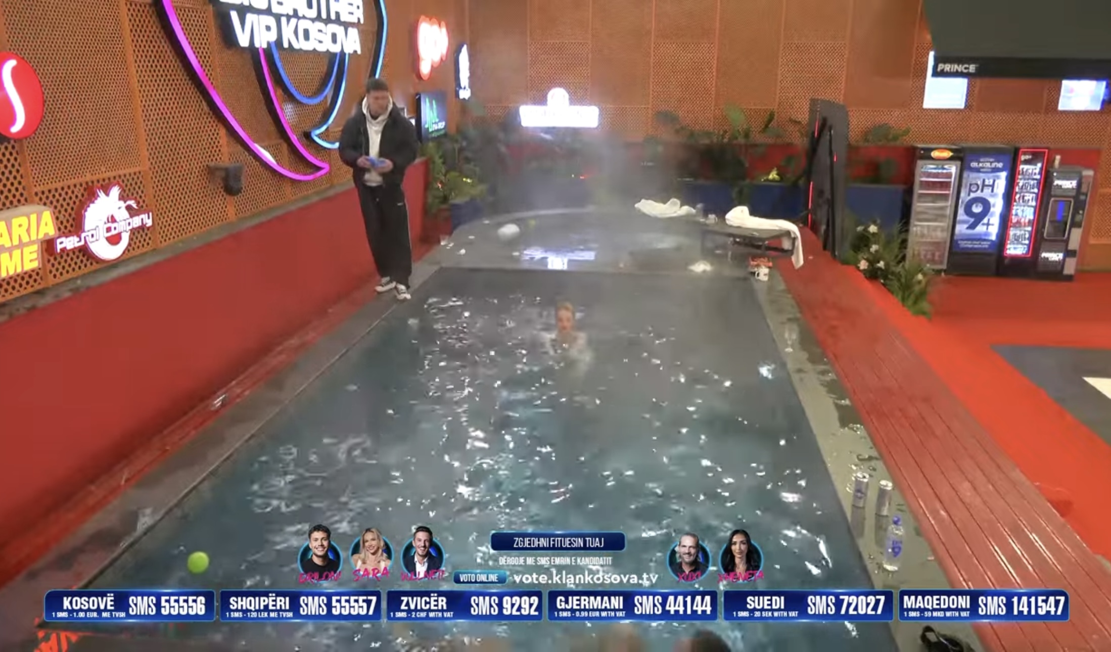 Driloni dhe Xheneta kanë kaluar kohë bashkë në pishinë. Driloni u përpoq t’i thoshte diçka Xhenetës nën zë teksa ‘Vëllai i Madh’ në vazhdimësi i tërhoqi vërejtjen meqë edhe mikrofonat s’i kishin shumë...