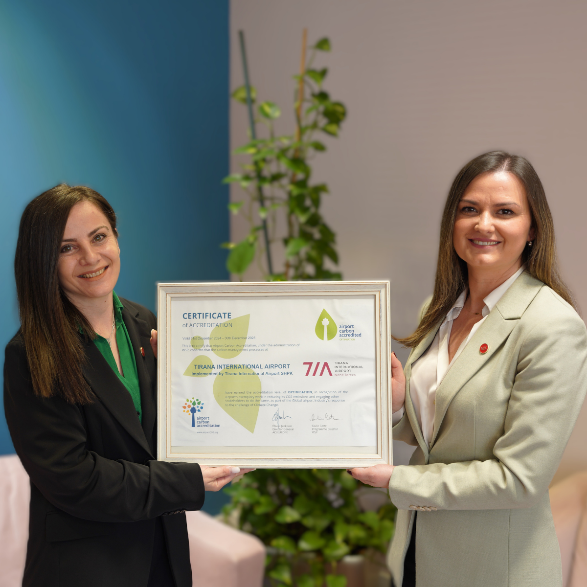 Aeroporti Ndërkombëtar i Tiranës (TIA)është çertifikuar me Nivelin 3-Optimizim, nga programi i Akreditimit të Karbonit të Aeroporteve; i vetmi program i miratuar institucionalisht që drejtohet nga Këshilli...