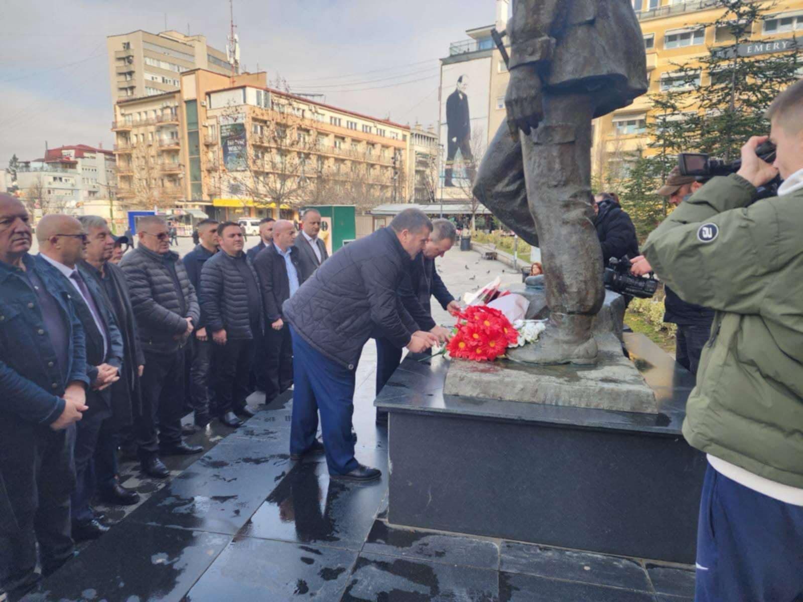 Kryetari i OVL-së së UÇK-së, Hysni Gucati, me pjesëtarë të tjerë të organizatës që drejtonë dhe me përfaqësues të Shoqatës së Dëshmorëve dhe Invalidëve, kanë bërë homazhe para shtatores së Zahir Pajazitit....