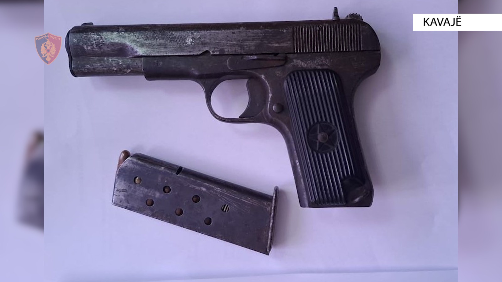 Një 12-vjeçar është kapur nga Policia e Kavajës duke qarkulluar i armatosur me një pistoletë dhe një karikator me fishekë luftarak. Falë informacionit të marrë nga qytetarët, policia lokalizoi dhe shoqëroi...