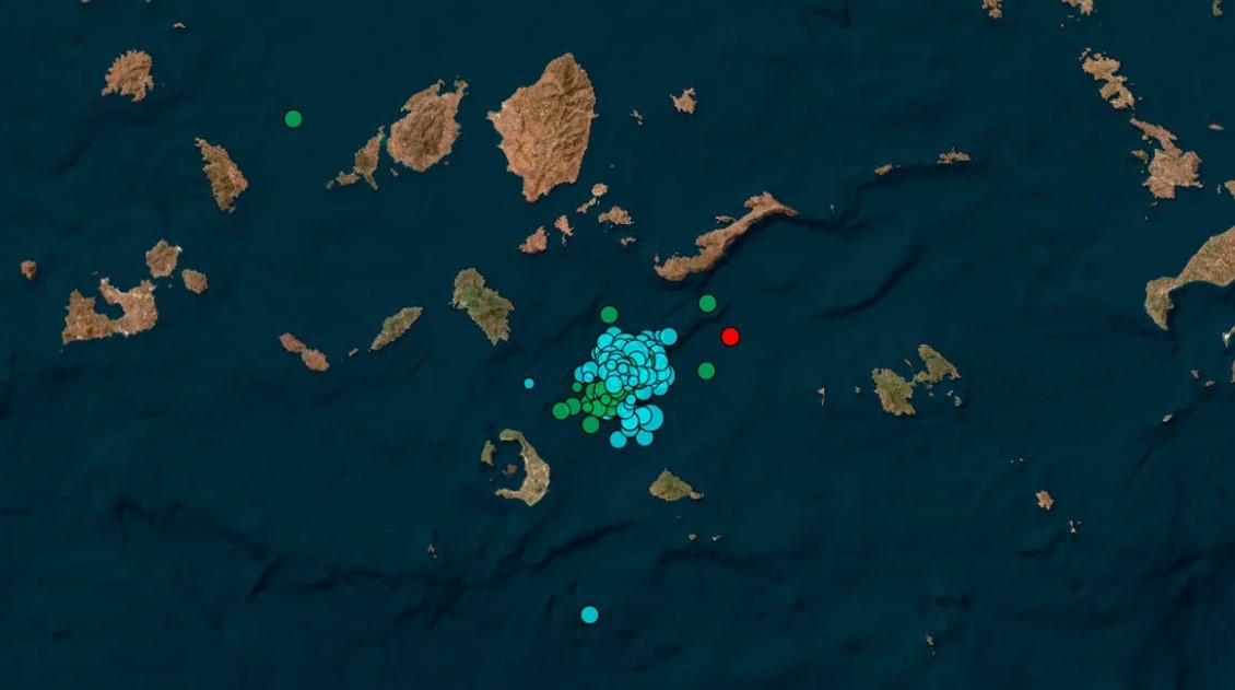 Dridhjet sizmike janë intensifikuar, duke arritur deri në 10 tërmete në orë (me deri në 12 lëkundje të regjistruara mes orës 2 dhe 3 të mëngjesit të sotëm), në zonën detare midis Santorinit dhe Amorgos....