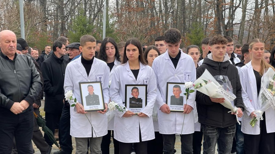 2 Ka nisur ceremonia e varrimit të tre të miturve që vdiqën tragjikisht në Jabllanicë të Gjakovës. Të pranishëm janë qindra pjesëmarrës duke filluar nga shoqëria e klasës së tyre dhe më gjerë.