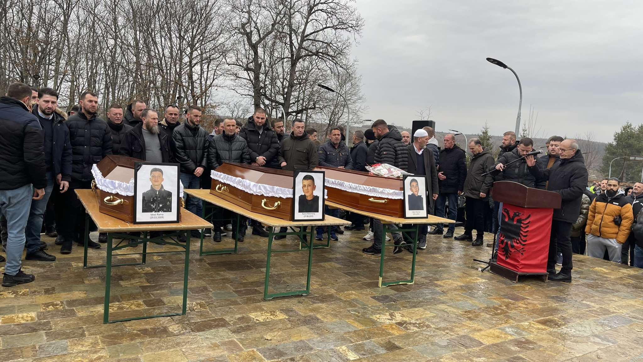 2 Ka nisur ceremonia e varrimit të tre të miturve që vdiqën tragjikisht në Jabllanicë të Gjakovës. Të pranishëm janë qindra pjesëmarrës duke filluar nga shoqëria e klasës së tyre dhe më gjerë.