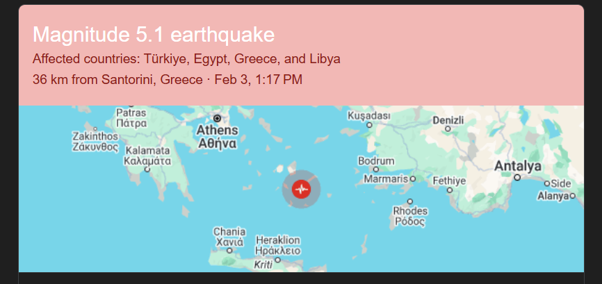 ërmeti i fundit i fuqishëm që ka ndodhur në orën 13:55 të së dielës pasdite në Santorini, me magnitudë 4.6 ballë të shkallës Rihter ka ngjallur frikë dhe pasiguri. Epiqendra e tërmetit është regjistruar...