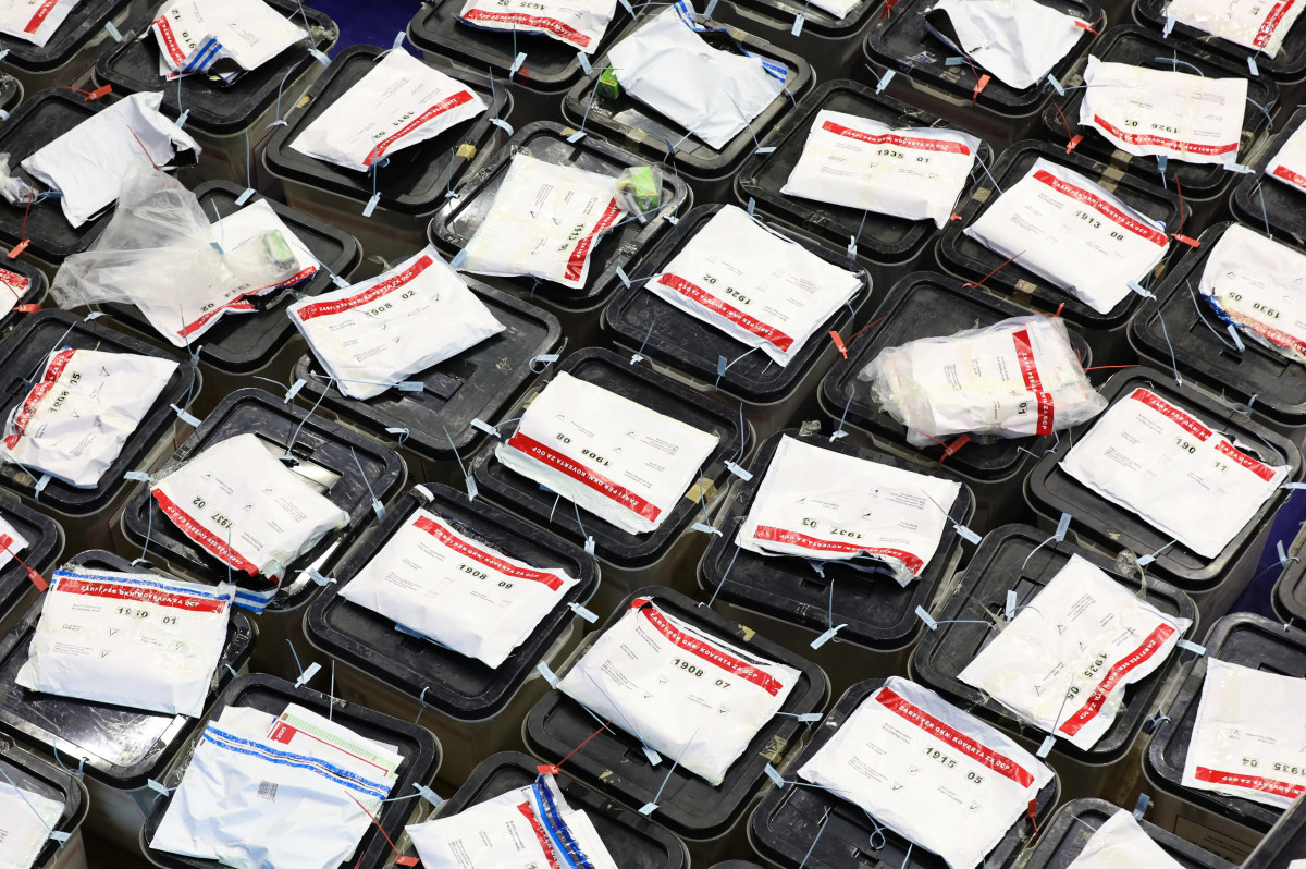 Kuti të mbushura me vota nga zgjedhjet parlamentare të 9 shkurtit në Kosovë, në qendrën e numërimit në sallën “1 Tetori” në Prishtinë, 11 shkurt. Komisioni Qendror i Zgjedhjeve (KQZ) ka ngulur këmbë se...