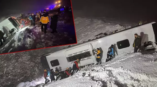 Përmbyset autobusi në Turqi, të paktën katër të vdekur 13 Feb, 20:59 Autobusi me pasagjerë doli jashtë rrugës si pasojë e reshjeve të dendura të borës në zonën Genç të Turqisë, ku raportohet se ka viktima...