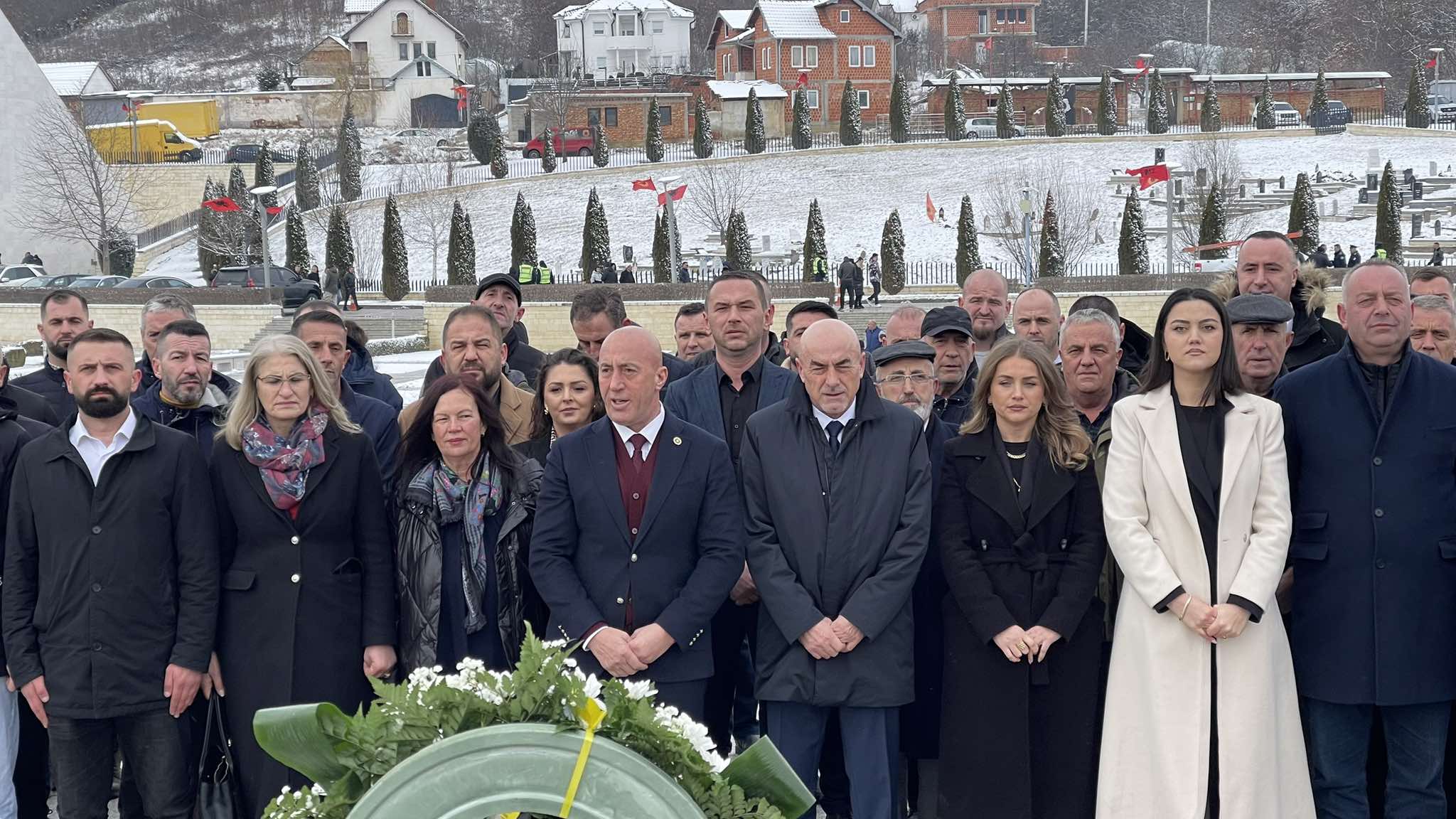 Kryetari i AAK’së, Ramush Haradinaj, me bashkëpunëtorë, ka shkuar për homazhe në Prekaz. Me të ishin edhe Nuredin Lushtaku, Bashkim Ramosaj dhe Teutë Haxhiu.