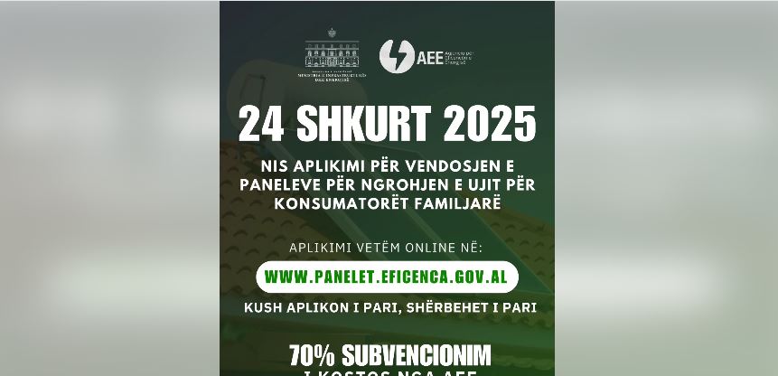 Nga sot qytetarët mund të aplikojnë për të përfituar subvencionin deri në 70% për vendosjen e paneleve diellore për ngrohjen e ujit. Zëvendëskryeministrja, njëherësh ministre e Infrastrukturës dhe Energjisë,...