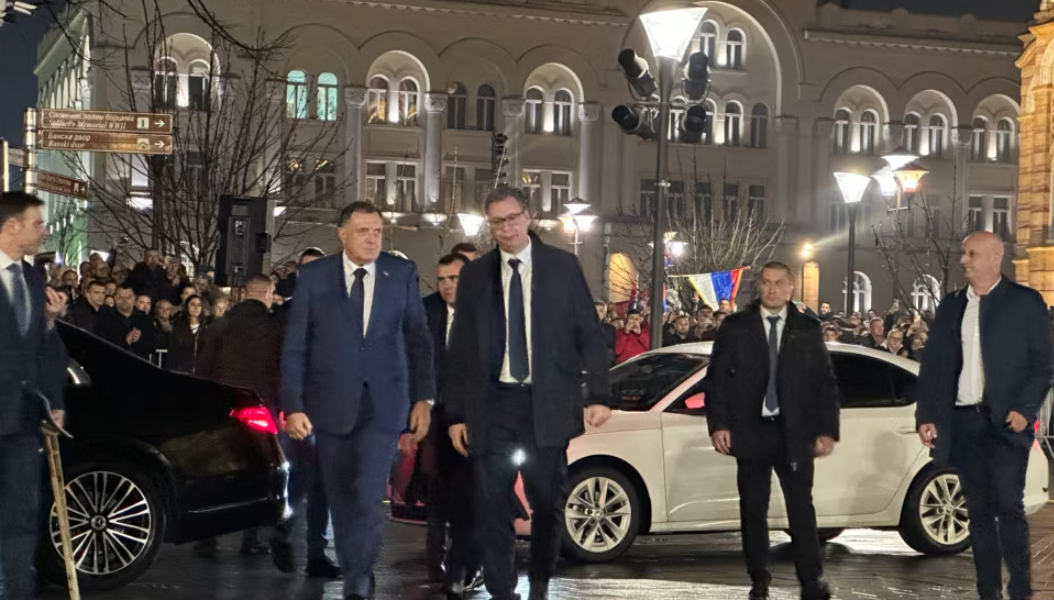 Sarajevë Presidenti serb Aleksandar Vuçiq pas mbërritjes në Banja Llukë, Bosnje e Hercegovinë, tha se me vendimin kundër kreut Milorad Dodikut "u sulmua Republika Srpska" dhe se "kjo është një ditë e vështirë...