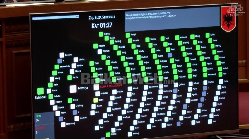 Votohet në parlament me 76 vota pro, zgjatja e vlefshmërisë së kartave te identitetit apo pasaportave që kane skaduar. Kjo është e vlefshme vetëm për qytetarët shqiptarë qe do të votojnë nga jashtë Shqipërisë....