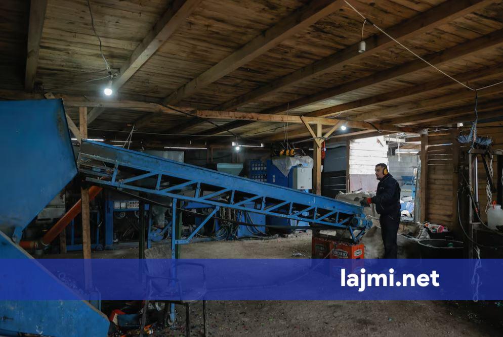 Kenan Gashi pret gjymtyrët e manekinëve të vjetër në dyqanin e tij dhe i hedh në makineritë e dhuruara nga qeveria amerikane që copëtojnë dhe pastrojnë plastikën në mënyrë që të shitet për ripërdorim....