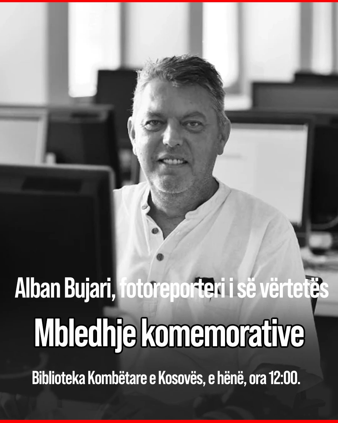 Në Bibliotekën Kombëtare në Prishtinë, sot nga ora 12:00, do të mbahet mbledhja përkujtimore “Alban Bujari, fotoreporteri i së vërtetës”, në nderim të veprës dhe jetës së fotoreporterit Alban Bujari. Në...