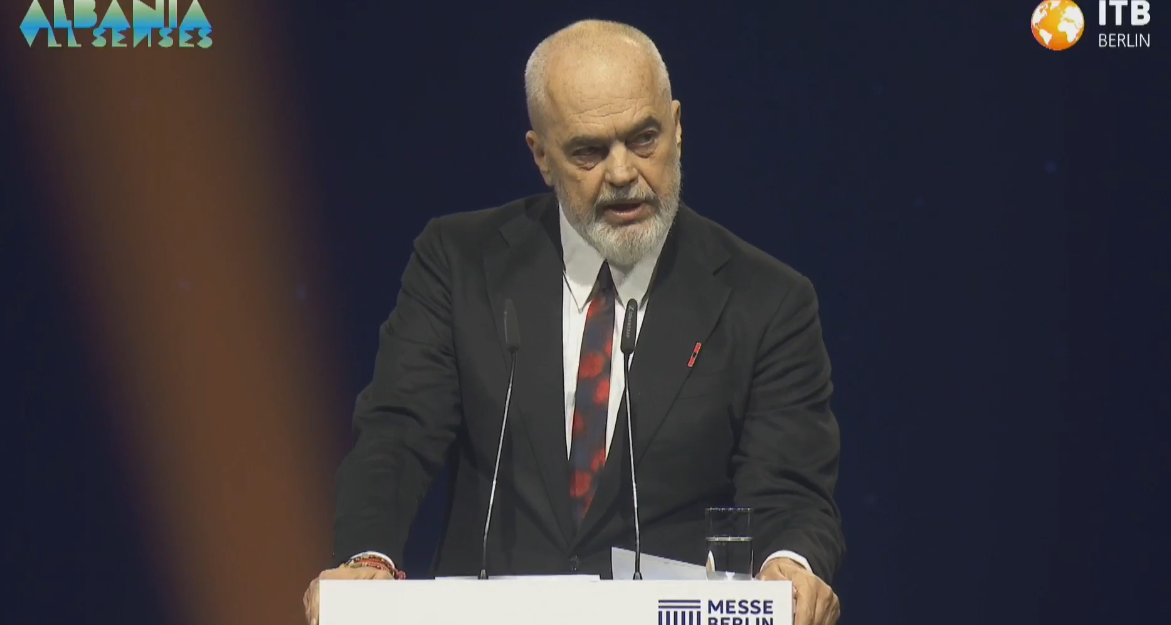 Kryeministri Edi Rama ka mbajtur fjalën e tij në hapjen e Panairit Ndërkombëtar të Turizmit në Berlin, ku Shqipëria është përzgjedhur si “vendi i nderit” për vitin 2025. Gjatë fjalës së tij, Rama tha se...