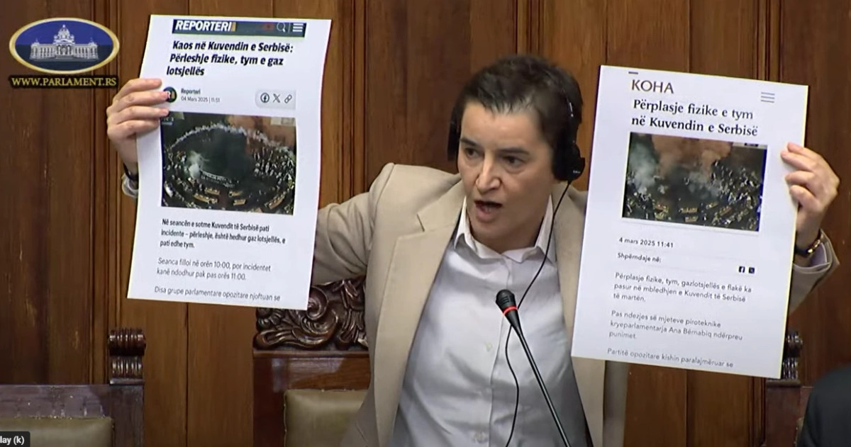 Pas përplasjeve e tensioneve në Parlamentin e Serbisë, kryeparlamentarja Ana Bërnabiq, duke mbajtur në duar pamje nga shkrimet e mediave në Kosovë, ka akuzuar opozitën në Serbi se “po e kënaqin terroristin...