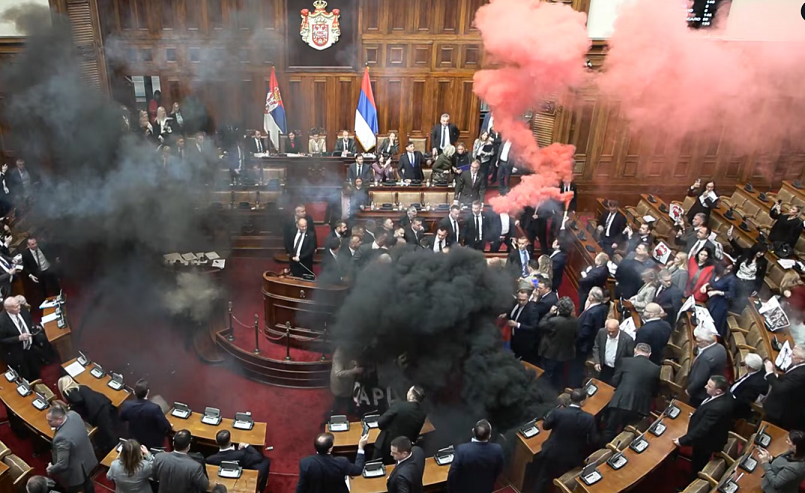 Një incident ka ndodhur më 04.03.2025 në seancën e Kuvendit të Serbisë, pasi deputetët e opozitës u ngritën nga ulëset dhe aktivizuan bomba me tym në sallë. Aty pati edhe përplasje fizike mes personave...