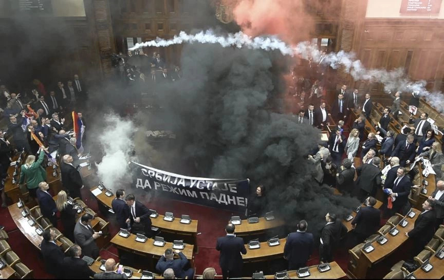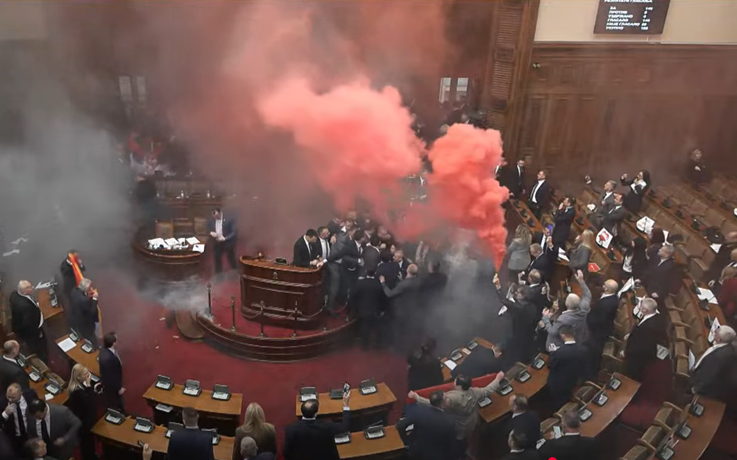 Një incident ka ndodhur më 04.03.2025 në seancën e Kuvendit të Serbisë, pasi deputetët e opozitës u ngritën nga ulëset dhe aktivizuan bomba me tym në sallë. Aty pati edhe përplasje fizike mes personave...