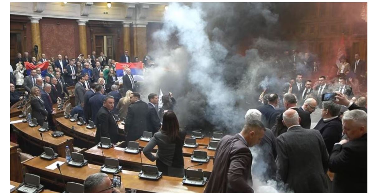 Trazira ndodhën dje në Kuvendin e Serbisë. Tym e flakë, u pa brenda sallës e krejt kjo u shkaktua nga opozita atje, në kundërshtim të politikës së presidentit Aleksandar Vuçiq.