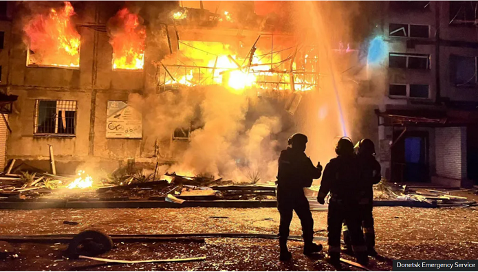 Të paktën 11 persona u vranë dhe 30 u plagosën në një sulm rus në Dobropillya, një qytet në rajonin Donetsk të Ukrainës lindore, thonë autoritetet ukrainase. Tetë ndërtesa banimi dhe një ndërtesë administrative...