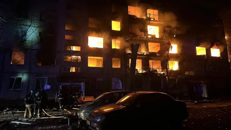 Të paktën 11 persona u vranë dhe 30 u plagosën në një sulm rus në Dobropillya, një qytet në rajonin Donetsk të Ukrainës lindore, thonë autoritetet ukrainase. Tetë ndërtesa banimi dhe një ndërtesë administrative...