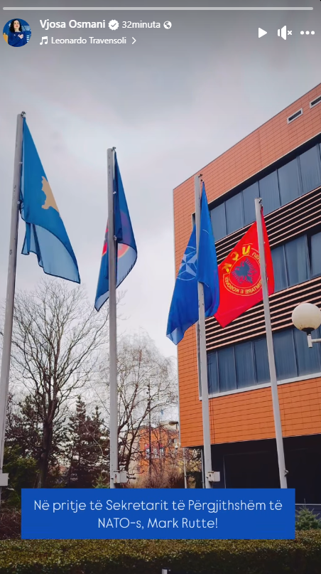 Presidentja e Kosovës, Vjosa Osmani, pak para takimit me sekretarin e NATO’s Mark Rutte ka publikuar një video në story në Facebook të katër flamujve që valojnë afër presidencës. Bëhet fjalë për flamurin...