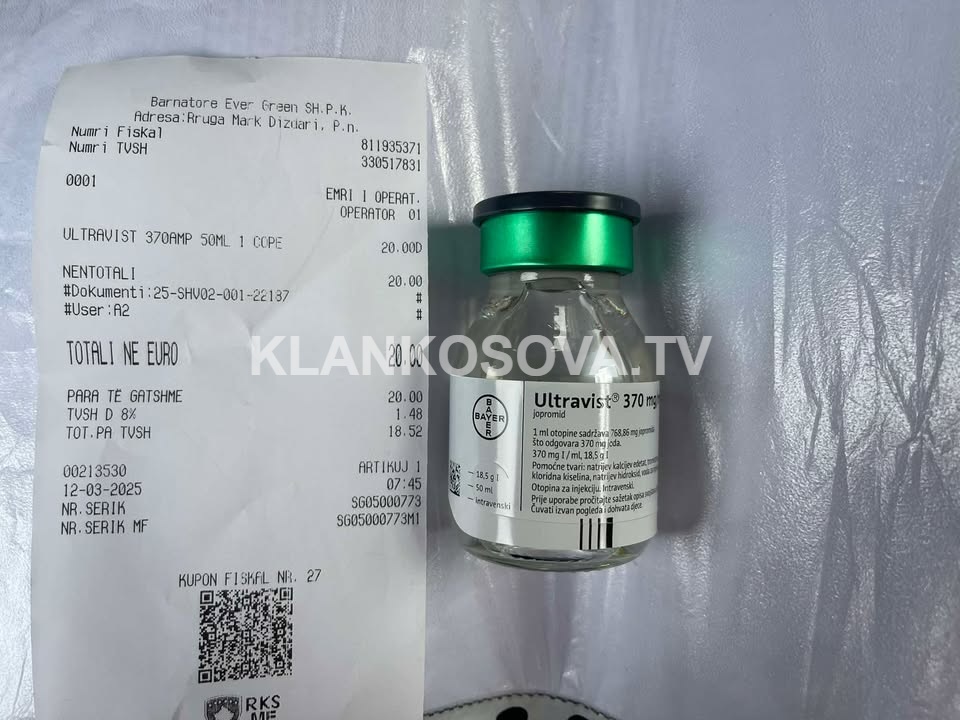 Në Qendrën Klinike dhe Universitare të Kosovës po mungojnë kontrastet. Kështu deklaron një lexues i Klankosova.tv. I njëjti në redaksi ka sjell edhe dëshmi se atij i është dashur ta blinte vet kontrastin....