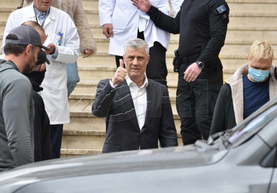 Hashim Thaçi është parë duke u larguar nga objekti i QKUK-së, aty ku qëndroi për disa orë për ta parë babanë e sëmurë. Largimi i Thaçit u shoqërua me brohorima nga dhjetëra njerëz që ishin mbledhur në oborrin e klinikës./Koha.net